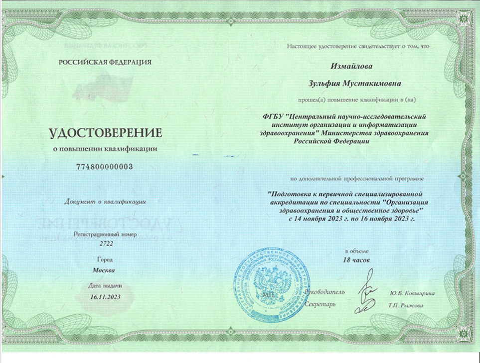 Измайлова Зульфия Мустакимовна