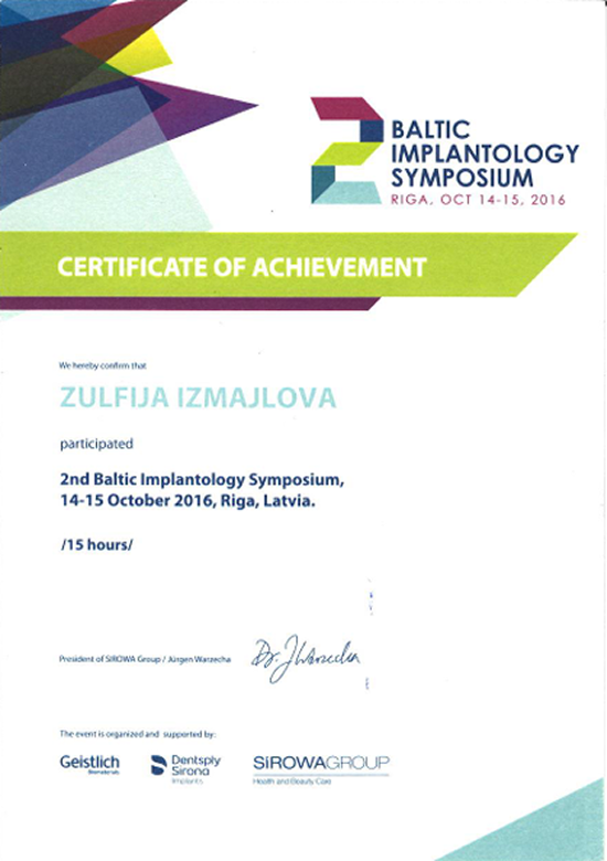 | 2016 | 2-й Балтийский имплантологический симпозиум | Рига, Латвия | ||